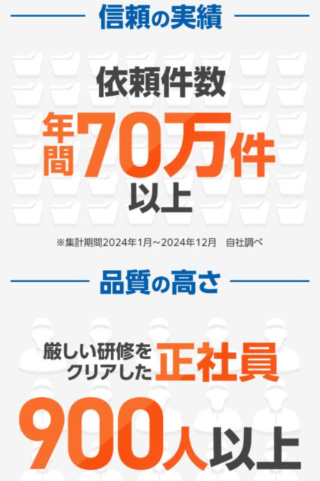 年間の依頼件数は、驚異の70万件以上で業界トップクラス。